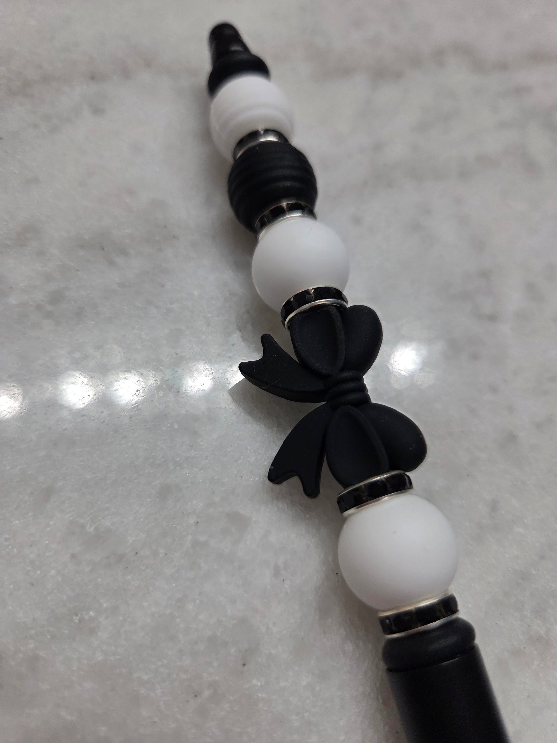 This pen matches beautifully with the Black and White Wristlet and the Black and White Keychain! All of them are elegant and understated and go with everything!