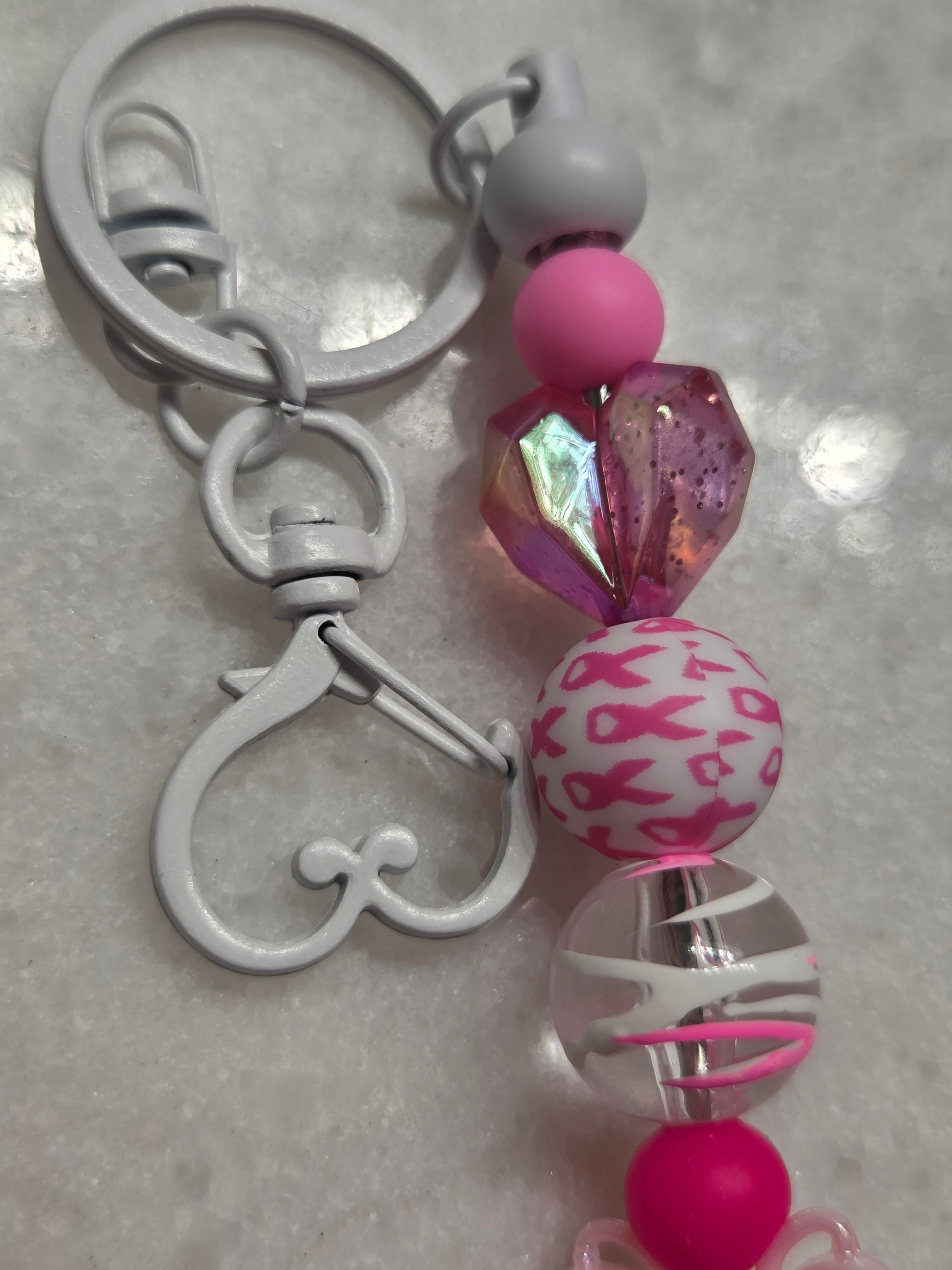 Breast Cancer has personally touched my life, as I'm sure it has many people. October is Breast Cancer Awareness Month, vastly approaching, and I wanted to make a collection recognizing it. All proceeds from ANY Breast Cancer Awareness product will be donated to a cancer research organization. I appreciate any and all donations made by the purchase of my products. Thank you in advance if you do decide to donate- and receive a beautiful product in remembrance of someone special in your life who has fought this terrible disease. There is only one (1) of this particular key chain design available.