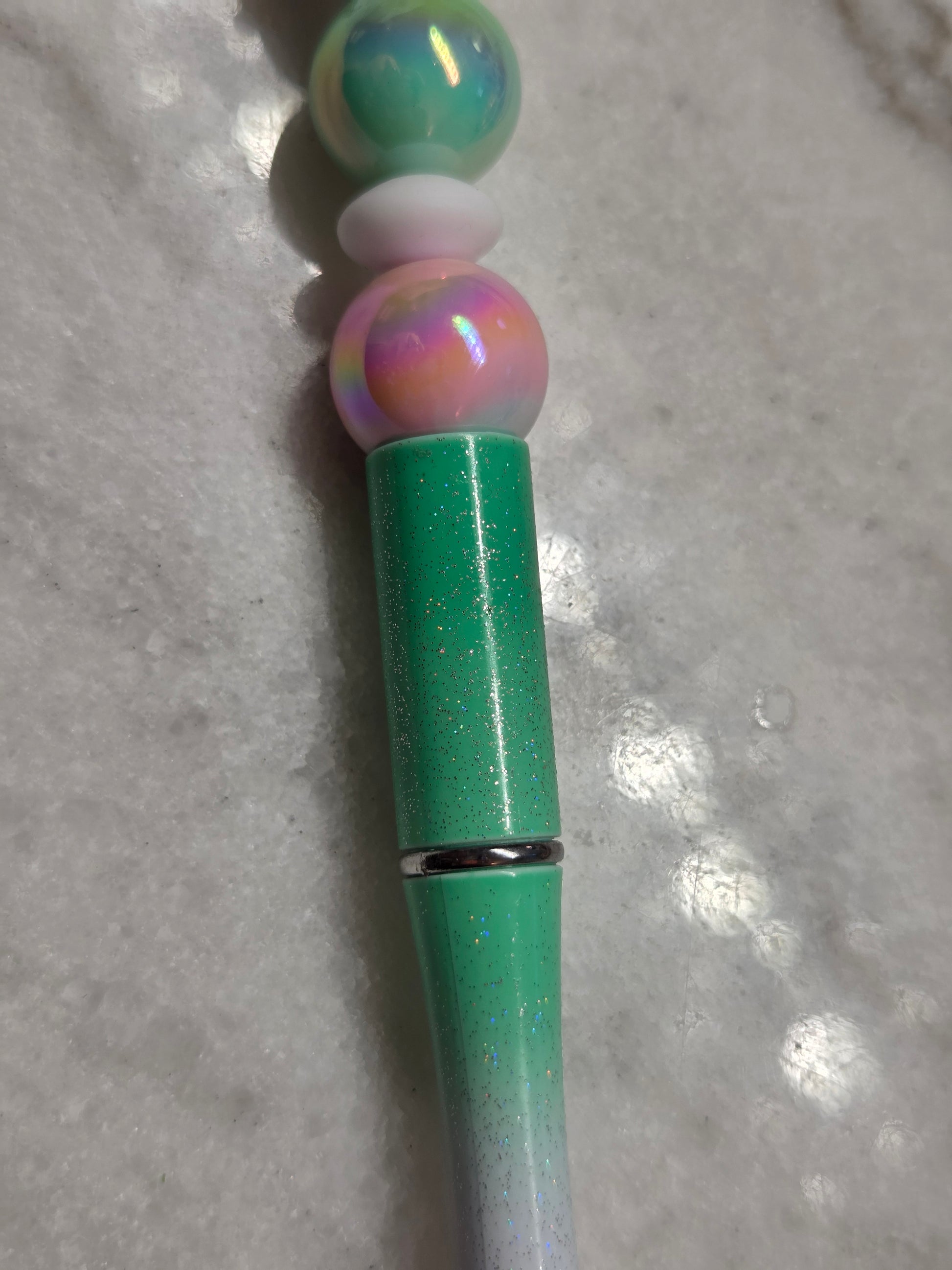 This adorable Ballpoint pen has a cute waving snowman on it. The beads and color story of this pen are just beautiful!