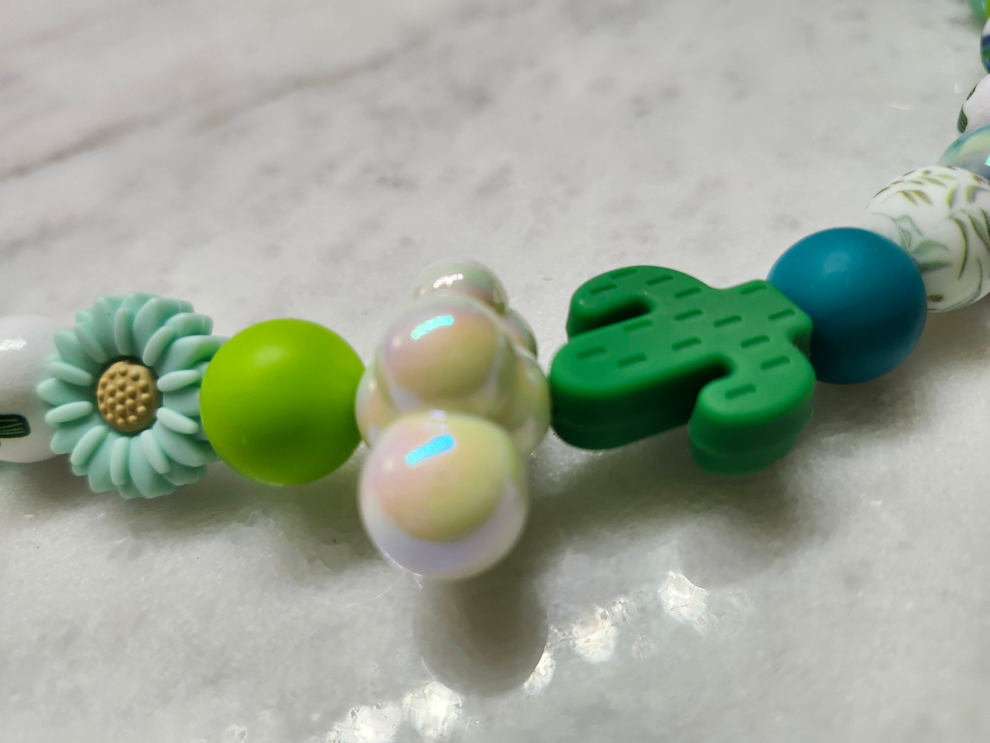 Love our prickly in pink collection but not a fan of the "pink" part? No need to fear! We made a aqua version! This is the only one (1) available of its design in this collection! The purse charm measures 13 inches in length.